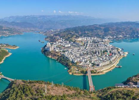 湖光山色间 碧水绕古镇