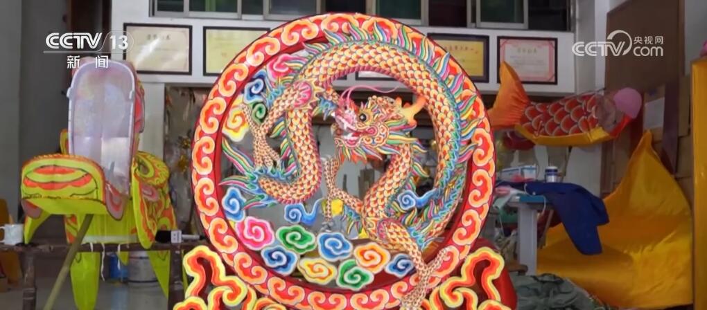 这件精美的龙灯彩扎艺术品,名叫《飞龙在天》,是由非遗传承人周合平历时3个月完成的,马上就要送往北京,收藏在中国非物质文化遗产馆。在这间扎龙工作室里,记者看到,大家正在赶制一批表演用的龙灯。