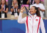 8月3日,郑钦文获得巴黎奥运会网球项目女子单打冠军。新华社记者万象 摄