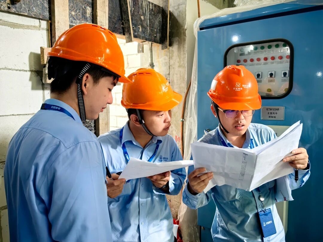 “玲龙一号”建设人员在核对相关数据(央广网记者 付美斌摄)